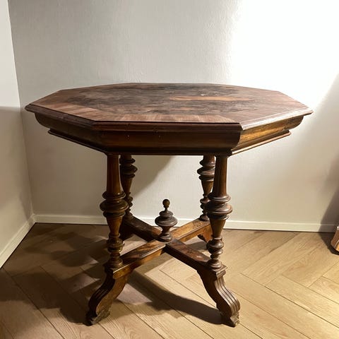 Pöytä oli joskus hiano, mutta nyt viettänyt muutaman vuoden kylmässä varastossa, niin kansi mennyt tuollaiseksi.