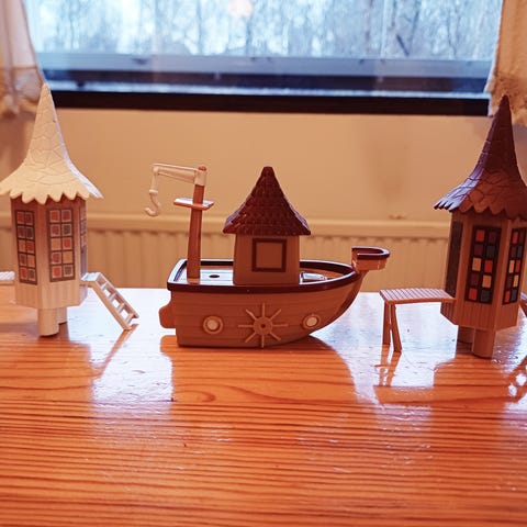 Pieni muumilaiva, uimamaja ja figuurit