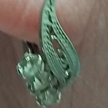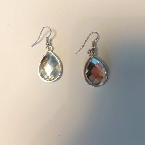 Roikkuvat korvakorut, joissa sininen "timantti".