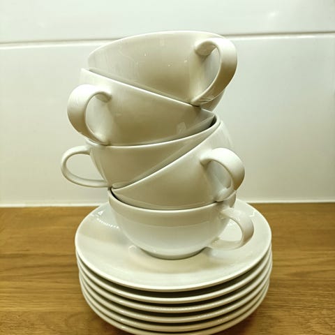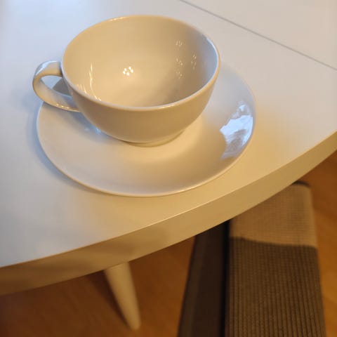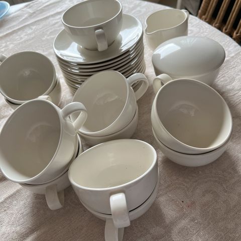 Kupit ja lautaset ovat sävyltään yksiväriset ja muotoilultaan pelkistetyt. Sopivat arki- ja kahvipöytään sekä yhteensopiviksi muun valkoisen astiaston kanssa.