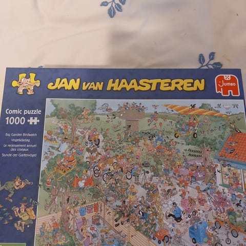 Jan van Haasteren Comic Puzzle -palapeli, jossa 1000 palaa. Kuvassa värikäs ja yksityiskohtainen sarjakuvamainen kohtaus. Sopii palapelien harrastajille ja koko perheelle koottavaksi.