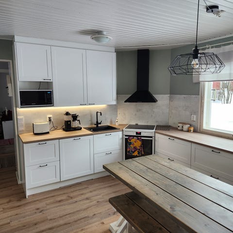 Myydään remontin alta vuonna 2007 valmistuneen keittiön, aulan ja eteisen kalusteet ja kodinkoneet. Aikataulu n. vko 10/2026.