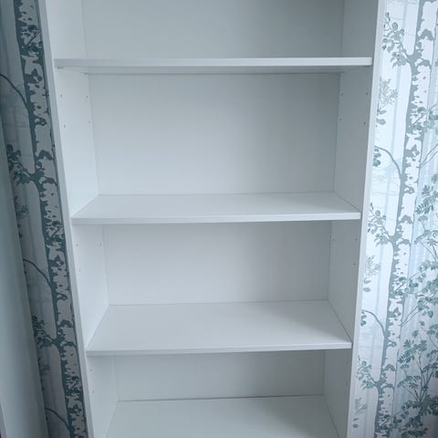 Neljä säädettävää hyllyä ja 4 laatikkoa. Pieniä kolhuja toisessa kyljessä ja yhden laatikon sivussa.