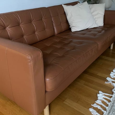 IKEA Landskrona 2 ja 3 istuttavat konjakinväriset nahkasohvat