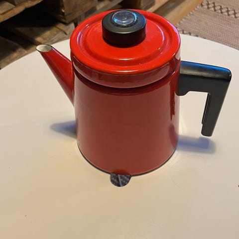 Emalinen siisti kahvipannu. Ei elintarvikekäyttöön. Komea vitriinissä. Kulkeutuu Haapajärvelle ja Jyväskylään jos tarve vaatii.