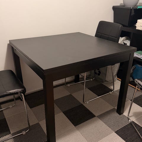 Valkoinen pöytä, pinnassa jotakin pieniä käytönjälkiä. Ollut 4hlö ruokapöytänä.