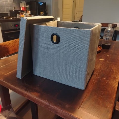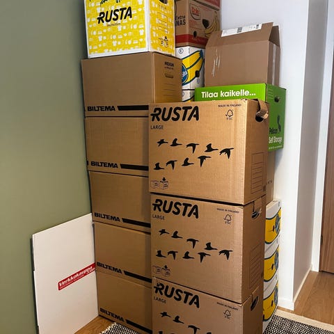 Kerran muutossa käytettyjä koottavia pahvilaatikoita. Koko näkyvissä kuvassa.