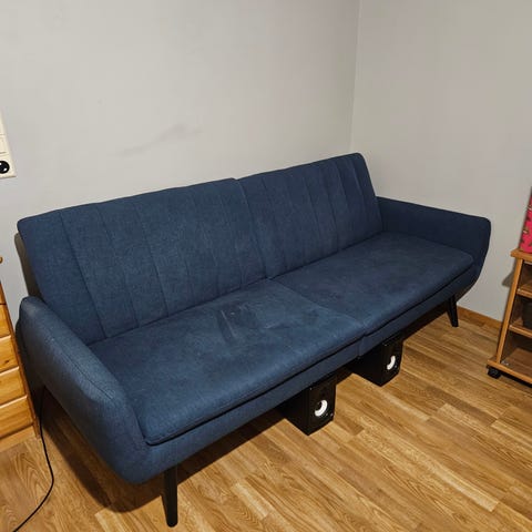 Annetaan sotkan sohva 2 vuotta vanha. Sohvan mekanismi on rikki, jatkokäyttöä oletetaan vain laajennetussa asennossa. Lemmikeiden kotitalous.