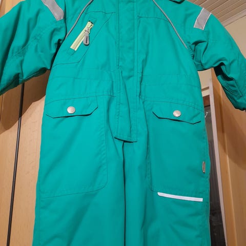 Haalari ollut meillä kahdella lapsella käytössä, joten käytönjälkiä löytyy. Mielestäni kuitenkin vielä hyvässä kunnossa seuraavalle, meillä pitänyt lapsen kuivana ja lämpimänä. Polvissa ja pepussa pehmentymää ja hihansuissa sekä lahkeissa pientä kulumaa. En löytänyt reikiä enkä suurempaa moitetta. Haalarissa irrotettava huppu ja hupun karvareunan saa myös irti erikseen.