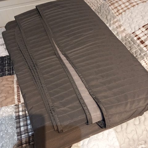 Peitto pesty ennen säilöön laittoa, tyynyn päällisiä ei.