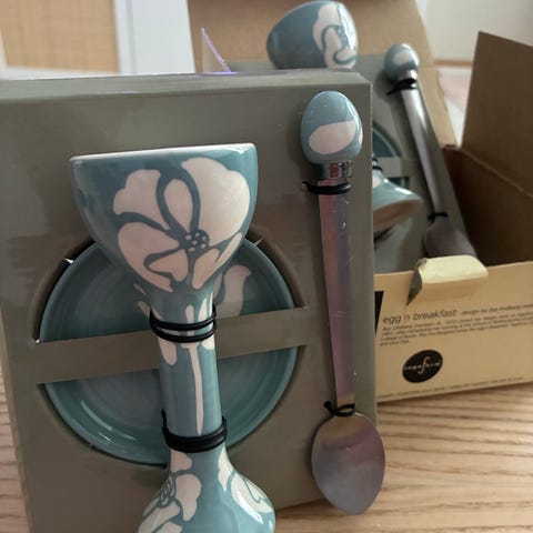 Sagaform Egg in Breakfast munakuppi ja lusikka sininen kukkakuosi