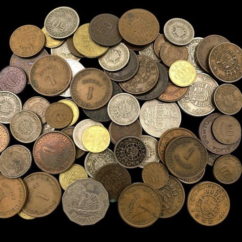 Maailma. 247 kolikon kokoelma, sisältäen kuparia ja pronssia Portugalista, siirtomaista ja koko maailmasta, aikakaudelta keskiajalta nykyaikaan. Useita päivämääriä.
