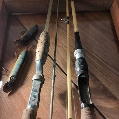 Vanhat heittovapa ja virveli keloineen.