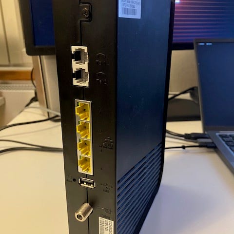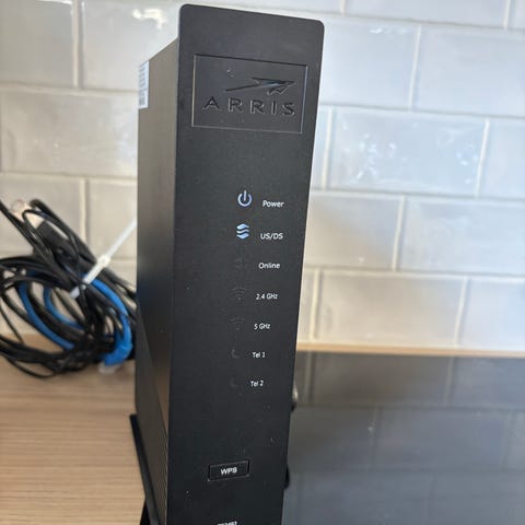 Arris TG2492S. Toimiva ja siistikuntoinen kaapelimodeemi.