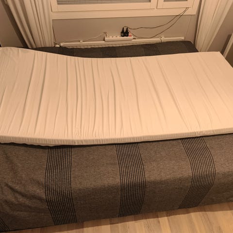Ovat olleet epäsäännöllisesti käytössä toisessa lastenhuoneessa. Päällä on aina ollut vedenpitävä kosteussuoja lakanan alla.