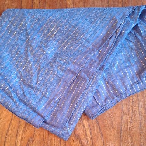 Vintage valkoinen puuvillahuivi hopealankaraidoilla