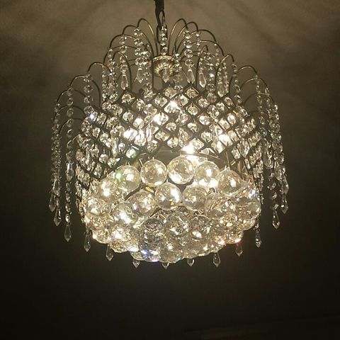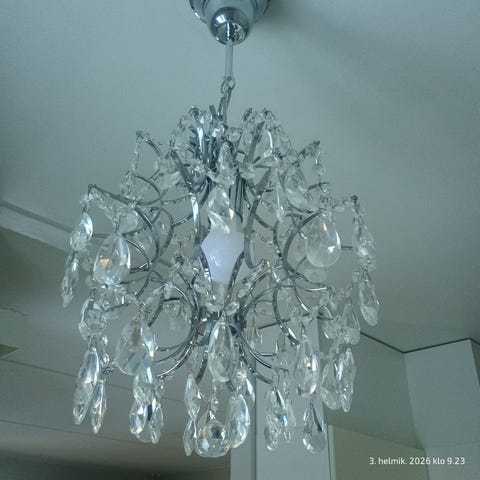 Hakusanat: valaisin, kattovalaisin, sisustus, kristallivalaisin, metallirunko, kattokruunu, kristallit, koristeellinen, klassinen, sähköliitäntä