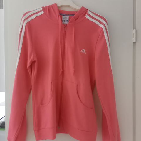 *Adidas verkkaritakki. Takki on väriltään fuksianpunainen. Takissa on korkea kaulus ja olkapäät on tässä mallissa hieman pudotettu. Takin helma on hieman lyhyempi edestä. Adidaksen logo brodeerattuna takin etupuolella. Kunto takissa hyvä, rinnassa on pieni tumma jälki. Koko 38, hinta 7€.