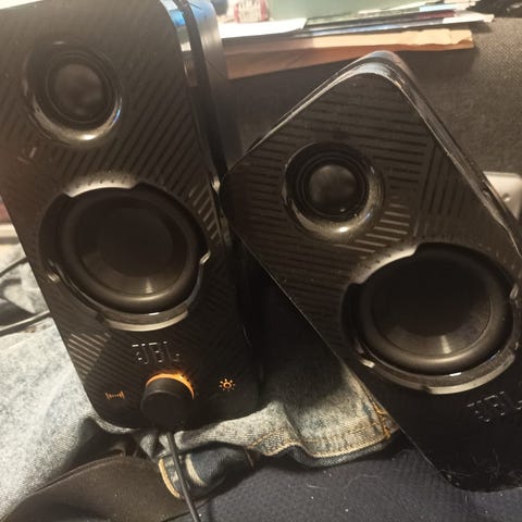 Vähällä käytöllä ollut kaiutin. Muutama tahra, jotka näkyy kuvassa. Ehjä ja toimiva.