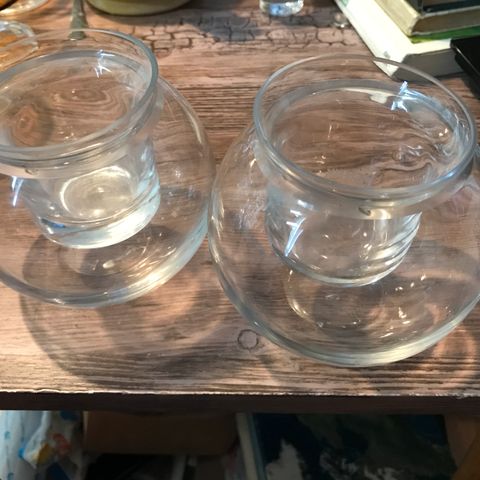 Pentikin tuikkukipot, kaksi ehjää, yksi joskus haljennut pudotessaan ja liimattu takaisin yhteen mutta liiman kuumuuden kestosta ei tietoa, käytä vaikka koristeena tai led kynttilöiden kans