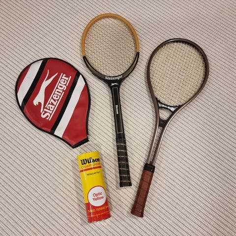 Hyväkuntoiset tennismailat kaipaa kentälle, kun on ainakin 40 vuotta viimeisestä pelistä. Mailat hyvässä kunnossa, vaikka ikää on n. 45 vuotta ja myydään yhteishintaan.