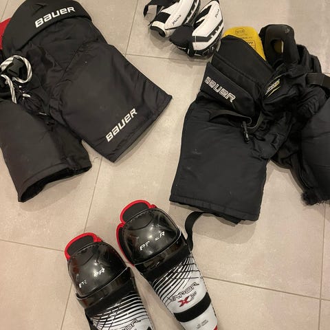 Myydään lasten jääkiekko varusteet koko settinä plus kassi ja varuste hengari.