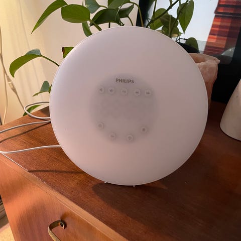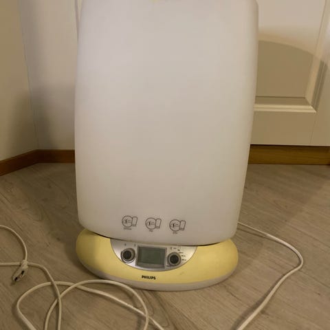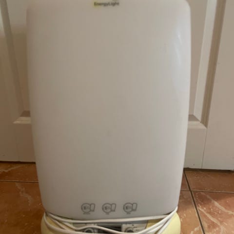 Philips EnergyLight kirkasvalolamppu. Valkoinen, suuri valopinta. Etupaneelissa yksi painike eli helppokäyttöinen. Virtajohto tulee mukana ja kytketään suoraan pistorasiaan (230 V). Sopii sisäkäyttöön tuomaan lisäenergiaa päiviin erityisesti pimeinä vuodenaikoina.