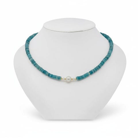 Kaulakoru - 18 kt. Keltakulta, Hopea Helmi - Jalokivisekoitus
