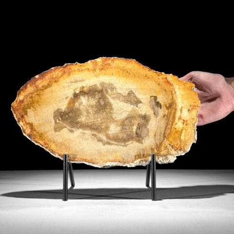 Upea pala petrifioitunutta puuta räätälöidyllä jalustalla.Petrified Wood on mineraalinen pala puuta, joka on muodostunut, kun puut kaatuivat ja peittyivät maaperän tai hiekan kerrokseen. Usein tämä tapahtuu luonnonkatastrofin seurauksena. Petrified Woodin värit riippuvat maaperän tai hiekan mineraaleista. Jokainen mineraali luo oman värinsä. 'Petrifikaatio'-prosessi varmistaa, että kaikki ominaisuudet, kuten solmut, kuori ja vuosirenkaat, säilyvät. Mahdollinen kaukaisen menneisyyden mätänemisprosessi voi johtaa upeisiin kristallimuodostelmiin, usein monivärisinä.Noin mitat - jalustan kanssa# Korkeus: 24,2 cm , Leveys: 32,5 cm , Viipaleen paksuus: 1,7 cmNoin mitat - ilman jalustaa# Korkeus: 19 cm, Leveys: 32,5 cm, Viipaleen paksuus: 1,7 cmVastuuvapauslausekeOle hyvä ja huomioi, että yksi kuvista on otettu pimeässä studiosta, ja värit voivat vaihdella ympäristön mukaan.Paino, joka mainitaan, sisältää pakkausmateriaalin.LähetysKohde lähetetään seurantanumerolla DHL Parcelin, DPD:n tai postNlin kautta. Seuranta päivittyy Catawiki-luettelossasi, kun pakettisi on jätetty postiin.Ole hyvä ja tarkista säännöllisesti välttääksesi pakettisi palautumisen meille, jolloin ostaja vastaa toisen lähetyksen toimituskuluista.Seurantaan Espanjaan ja Portugaliin käytä tätä linkkiä ja lisää Catawiki-erästäsi saatu seurantanumero.https://clientesparcel.dhl.es/LiveTracking/HomeME EMME YHDISTÄ TOIMITUKSIA!!!Jos sinulla on kysyttävää paketistasi, ota meihin yhteyttä Catawiki-viestipalvelun kautta. Pyrimme vastaamaan kolmessa työpäivässä.