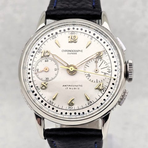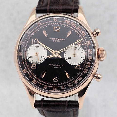 Merkki: NET - Chronographe SuisseLiike: Mekaaninen käsivirtaukseksiCalibre: Valjoux 7734Caixa: metalliKunto (Laatikko): Erittäin hyväHalkaisija (kotelon): 38,5 mm (kellon kruunulla)Läpimitta (kotelossa): 35,5 mm (ilman kruunua)Tila (Tiski): AlkuperäinenVidro: Erittäin hyväCoroa: yleinenRanneke: UusiFivela (Pulseira): yleisluonteinenPaksuus (ranneke): 18 mmKokonaismitta: 22 cmLähetys UPSin kautta.OBS:Kaikki tarjoajan maassa sovellettavat tullimaksut tai verot ovat hänen vastuullaan.Lähetyksen aika vaihtelee maittain, ja se kestää yleensä 1-3 työpäivää Euroopassa ja enintään 5 työpäivää Euroopan ulkopuolella.Valokuvat esittävät kellon kokonaisuudessaan, joten suositellaan, että ne ovat hyvin tarkkoja kaikista näkyvissä yksityiskohdista, sillä myyjän arvio ei välttämättä vastaa tarjouskilpailijan arvioita.Jos et ole samaa mieltä ehdoista, ole hyvä älä osallistu.------------------------------------------------------------------------------------------------Vieraile meidän viikoittaisessa verkkohuutokauppakaupassamme tutustuaksesi laajaan valikoimaamme korkealaatuisia kelloja, kuten:- Rolex, IWC, Hublot, Omega, Breitling, Panerai, Tag Heuer, Zenith, Audemars Piguet, Cartier, Patek Philippe, Jaeger LeCoultre, Longines, Chopard, Tudor, Blancpain, Glashutte, Franck Muller, Girard Perregaux, Maurice Lacroix, Universal Genève, Chronographe Suisse, Seiko, Tissot, Baume Mercier, Versace, Hamilton, Oris, jne jne