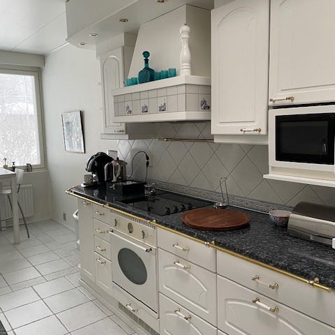 Keittiökalusteet pyökki,ovet kokopuuovet.Ovet olleet vihreitä ja ne on soodapuhallettu lähes puhtaaksi.Allas ja hana kuuluvat kauppaan kuin myös tammitasot