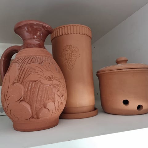 Häikäisevä terrakottapari, maljakko ja saviastia, valmistettu luonnollisesta savesta.Perinteinen saviastia, joka on valmistettu luonnollisesta savesta ja maalattu luonnollisilla väreillä, poltettu korkeissa lämpötiloissa saavuttaakseen lämpimät, maanläheiset sävyt. Sen pinta on rustiikkinen matta, korostaen saven luonnollista tekstuuria. Astian pyöreä runko ja kapea kaula heijastavat klassista käsityönä tehtyä keramiikkasuunnittelua, ja sitä käytetään usein veden, viljan tai koristeiden säilyttämiseen. Kestävä mutta elegantti, se yhdistää toiminnallisuuden ja ajattoman käsityötaidon.Käsityönä valmistettu terrakottaruukku, joka on tehty luonnollisesta savesta ja jossa on lämmin maamainen sävy sekä sileä, maalaismainen viimeistely. Sen orgaaninen tekstuuri ja perinteinen muoto korostavat luonnonmateriaalien kauneutta, tehden siitä täydellisen sekä koriste-esineeksi että toiminnalliseksi astiastoksi kukille tai kasveille.Arvioidut mitat- Terracotta 1 --> Korkeus: 41 cm, Leveys: 14 cm, Pituus: 14 cm- Terracotta 2 --> Korkeus: 40 cm, Leveys: 20 cm, Pituus: 20 cm> MAINITTU PAINO SISÄLTÄÄ PAKKAUSMATERIAALIN.LähetysKohde lähetetään seurantanumerolla DHL Parcelin, DPD:n tai postNlin kautta. Seuranta päivittyy Catawiki-luettelossasi, kun pakettisi on jätetty postiin.Ole hyvä ja tarkista säännöllisesti välttääksesi pakettisi palautumisen meille, jolloin ostaja vastaa toisen lähetyksen toimituskuluista.Seurantaan Espanjaan ja Portugaliin käytä tätä linkkiä ja lisää Catawiki-erästäsi saatu seurantanumero.https://clientesparcel.dhl.es/LiveTracking/HomeEMME YHDISTÄ TOIMITUKSIA!!!- Jos sinulla on kysyttävää paketistasi, ota yhteyttä meihin Catawiki-viestipalvelun kautta. Yritämme vastata kolmen työpäivän kuluessa.