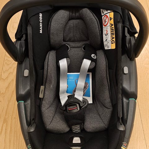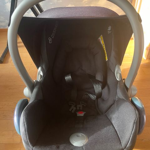 Maxi-Cosi kantokaukalo painoluokkaan 0–13 kg. Kantokaukalossa on kantokahva, irrotettava kuomu ja pehmustettu istuinosa ruudullisella päällisellä. Varustettu viisipistevaljailla ja soljella lapsen kiinnitystä varten. Soveltuu vauvoille vastasyntyneestä noin 13 kiloon asti. Kuvissa näkyy päällisen kulumaa repeämän muodossa.