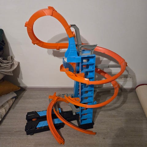 Leikeissä ollut rata. Toimiva ja ihan hyväkuntoinen, mutta paristolle on tehty joku oma kuparilankaviritys. Yks ostajaehdokas teki sille jotain ja nyt se tuntuu vähän tehottomalle tavan pikkuautoilla. En tiedä mitkä siihen sopis (vai onko vaan muuten hidas)