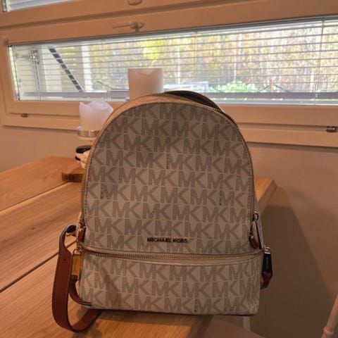 Michael Kors nahkainen reppu beige. Läppäkiinnitys yläosassa. Valmistettu nahasta, sopii arkeen ja vapaa-aikaan. Neutraali beige väri on helppo yhdistää erilaisiin asukokonaisuuksiin. Käytetty mutta hyvässä kunnossa.