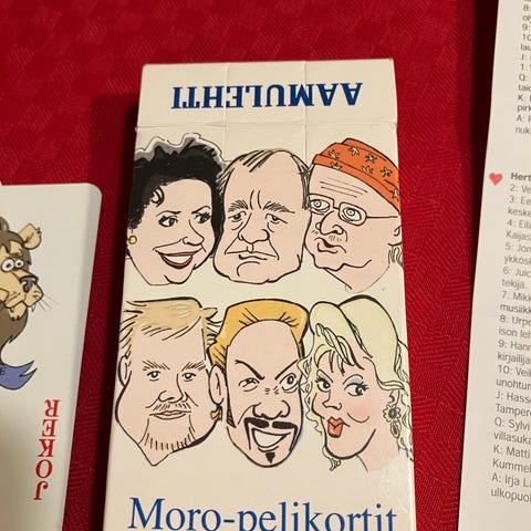 Pelaamattomia pelikorttipakkoja, Moro-hahmot 5e ja Viivi ja Wagner metallirasiassa 7e. (muita kuvassa näkyviä ei enää saatavilla)