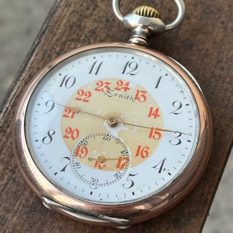Hyväkuntoinen ja käyntinen ehjä tauluinen 54 mm hopeinen myös välikansi ZENITH 15 RUBIS taskukello papuperät mukaan
