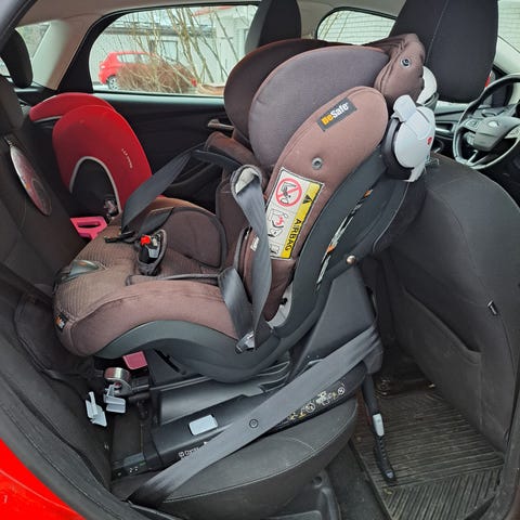Mukana kaikki ohjeet ja tarvikkeet pl yksi isofix-suoja, joka on piiloutunut. En ole koskaan näitä tarvinnut, kun istuinta on käytetty vain suosituksen mukaisesti selkä menosuuntaan.