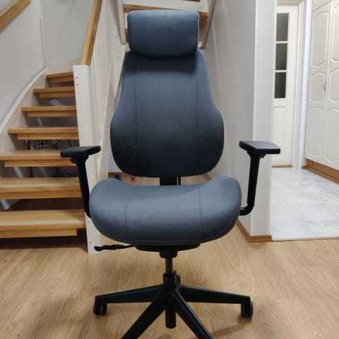 Kaikki toimii, ei vikoja. Säädettävä selkänoja, käsinojat ylös alas ja eteen taakse. Istuinosan säätö, korkeussäätö ja keinu. Kankaassa ei reikiä. Tarjouksia voi esittää. Nouto.