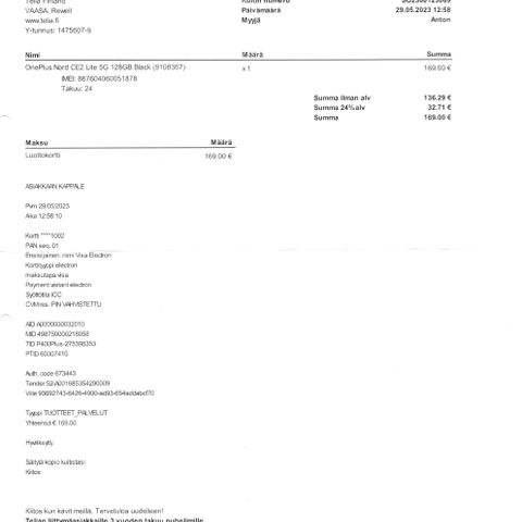 Toimitus alkaen 2,99 € + ToriDiili-palvelumaksu 9,70 €