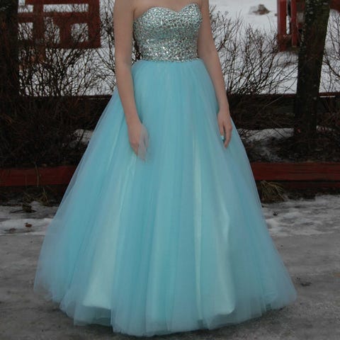 Myydään tarpeettomana vanhojentanssimekko. Kerran ollut käytössä. Mekko teetetty ompelimossa. Sisältää tyllihameen ja pitkävartiset hansikkaat. Hameen pituus kainalosta mitattuna ilman tylliä 1,16metriä. Vyötärömitta noin 77cm. Hinta 30 euroa ja vain nouto.
