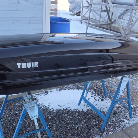 Uutena ostettu ja vähällä käytössä Thule Touring 600 kattoboksi, väri harmaa. Kapea ja pitkä kattolaatikko auton katolle esimerkiksi suksien, lumilautojen tai muun matkatavaran kuljettamiseen (max. kantokyky 50kg). Boksi kiinnitetään auton kattotelineisiin.