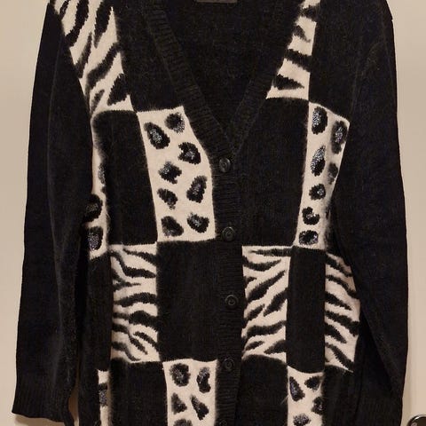 Myydään tummansininen chenille neuletakki kokoa M, olka-helma pituus on noin 70cm.