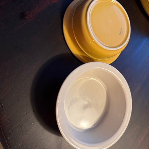 Korkea vuoka halk. 23 ja kork. 9 cm. Matala vuoka 24,5 ja 4,5 cm. Nouto tai Toridiili. Molemmat yhteensä 20 e.