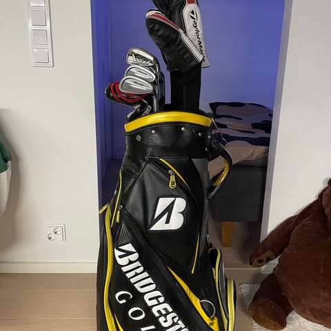 Wilson aloittelijan setti johon kuuluu draiveri, puu 5,putteri sekä raudat 6-sw. Lisäksi settiin mukaan ozonen 60 asteinen wedge ja wilsonin m2 hybridi 19 astetta stiffillä varrella . Raudat regular varsilla. Mailoilla pelattu 3 kautta, mutta hyvässä pelikunnossa edelleen. Bägistä valitettavasti kaikki taskut rikki.
