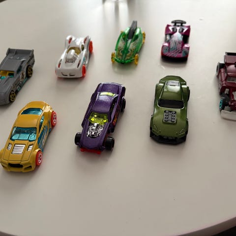 Myydään Hot Wheels autoja. 51 kpl pikkuautoa, kaksi isompaa autoa sekä yksi rekka.