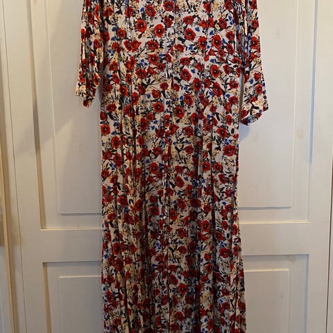 Zara Knit naisten maksimekko koossa M. Hihaton malli, jossa syvä pyöreä pääntie edessä. Mekko on pitkämittainen ja vartaloa myötäilevä. Väri on musta meleerattu, jossa on monivärisiä lankoja tuomassa kevyttä hohdetta pintaan. Materiaali on neulosta. Sopii esimerkiksi arki- ja juhlakäyttöön kerrostettuna muiden vaatteiden kanssa.