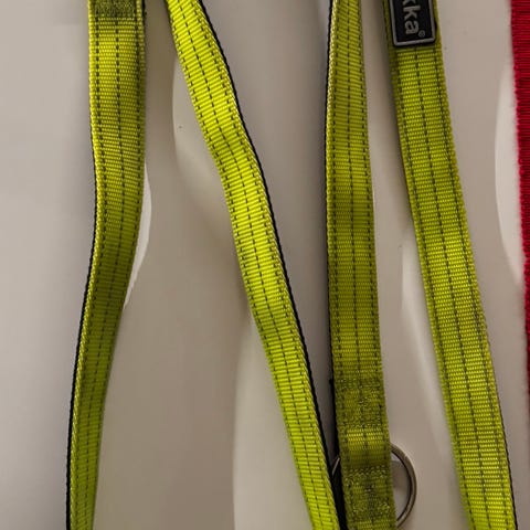 Pitkä kankaasta valmistettu monitoimitalutin. 3 metriä. Lukot täysin ehjät ja hihna muutoin hyvässä kunnossa mutta karvaa on. Ei ole paljoa ollut käytössä. Kangas rispaantunut joistakin kohdista, mutta ei vaikuta käyttöön.