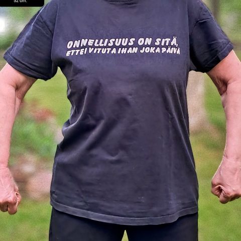 Jukka Virtasen sanoin näkyvä musta t-paita tarjolla. Kokomerkintä M. Paidan leveys n.50cm ja pit.n.64cm. 100 cotton merkintä niskalapussa.Käytön jälkiä on luonnollisesti.