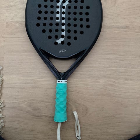 Tästä myyntiin erittäin hyvä all court maila. 3g painot sivulla ja päällä, helposti otettavissa pois tarvittaessa. Mukaan mailansuojus.